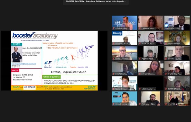 Pour cela chaque participant avait préparé son PITCH dans un format pré-établi. En effet, chacun disposait de 1 minute pour susciter un maximum d’intérêt dans la présentation de son activité (pour rappel le Club Gravelle Entreprendre avait déjà fait des matinales sur le Pitch et un afterwork comment « enchanter » ses présentations à distance ). Les fiches de présentation étaient projetées devant tous les participants lors de la prise de parole (et permettaient également de laisser une trace puisque toutes les fiches sont ensuite transmises aux participants).