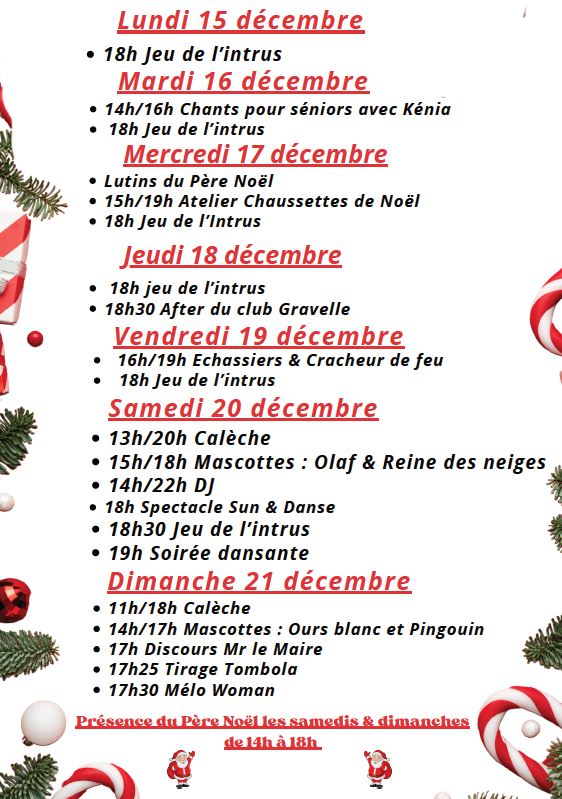 De nombreuses animations seront proposées pour les petits comme pour les grands. Le Père Noël sera même présent, ne le ratez pas tous les samedis et dimanche de 14 à 18h. Les week-ends également des tours en calèche seront proposés de 13h à 20h , pour rythmer les après midis entre contes, jeux, animations pour les enfants, le tout sur un rythme musical proposé par le DJ.