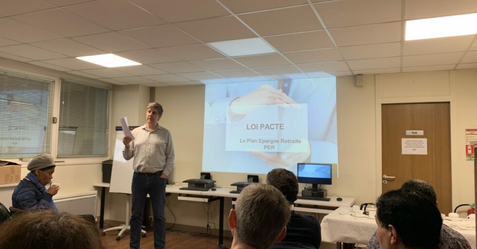Yann Delpierre de l’agence AXA et président du Club Gravelle Entreprendre, nous a éclairé sur la nouvelle loi PACTE qui permet de regrouper tous nos précédents contrats retraite (Article 83, Madelin, …) en un seul contrat retraite : le PER.