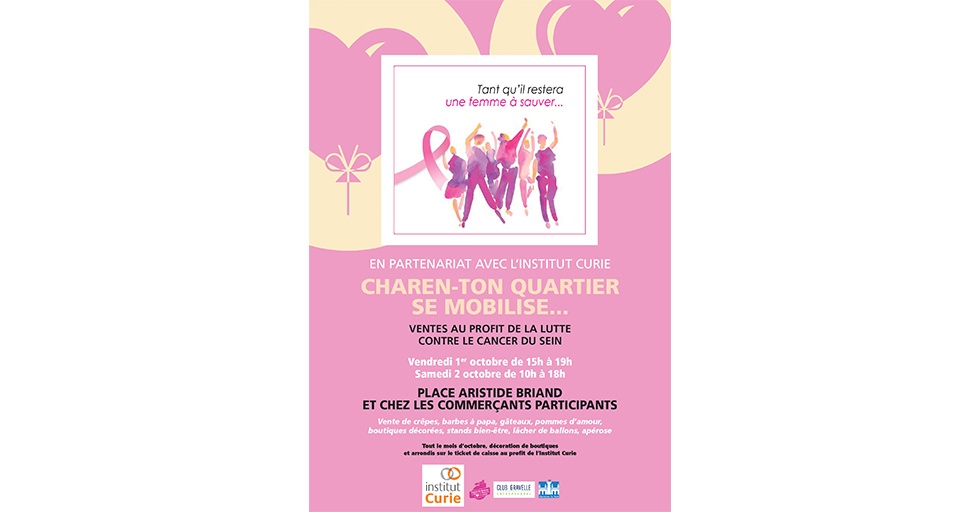 Durant tout le mois d’Octobre les commerçants de Charen-ton-quartier Club Gravelle se mobiliseront pour soutenir également Octobre Rose. Cela a commencé le vendredi 1er octobre avec la vente de crêpes, barbe à papa, …chez Happy Boulangerie dans le quartier de l’Archevêché et place A Briand. Samedi 2 octobre toute la journée dans les quartiers Liberté, A Briand; divers stands de vente de boissons, friandises et durant tout le mois d’octobre des vents de produits phares en vente chez les commerçants de Charen-ton-quartier Club Gravelle.