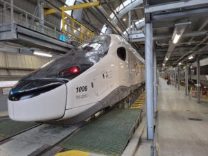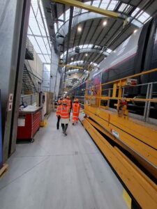 75 rames y sont actuellement maintenues par une équipe d’environ 700 personnes et le plus souvent ces opérations ont lieu la nuit lorsque les TGV ne roulent pas, pour ne pas les immobiliser et obérer l’activité commerciale de SNCF Voyageurs…Les visiteurs ont pu découvrir ainsi qe que SNCF voyageurs appelle souvent “les coulisses de l’exploit”.