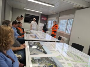 M Laurent Rostykus, directeur du projet TSEE4.0 (*) et Axelle De Brito, adjointe au directeur du projet ont accueilli le groupe avec une présentation des activités de ce site bien particulier puisqu’il fonctionne 24h sur 24 pour assurer le service des trains dans un cadre de vigilance sécurité extrême et est en même temps l’objet d’une transformation de grande ampleur pour pouvoir accueillir dès 2026 les nouvelles rames du TGV M.